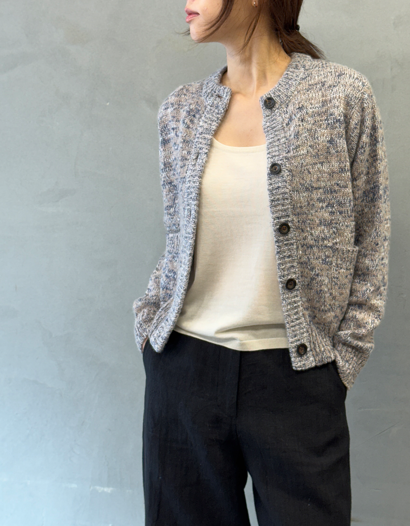 캐시미어 핸드스푼 컬러믹스 라운드넥 쇼트 가디건