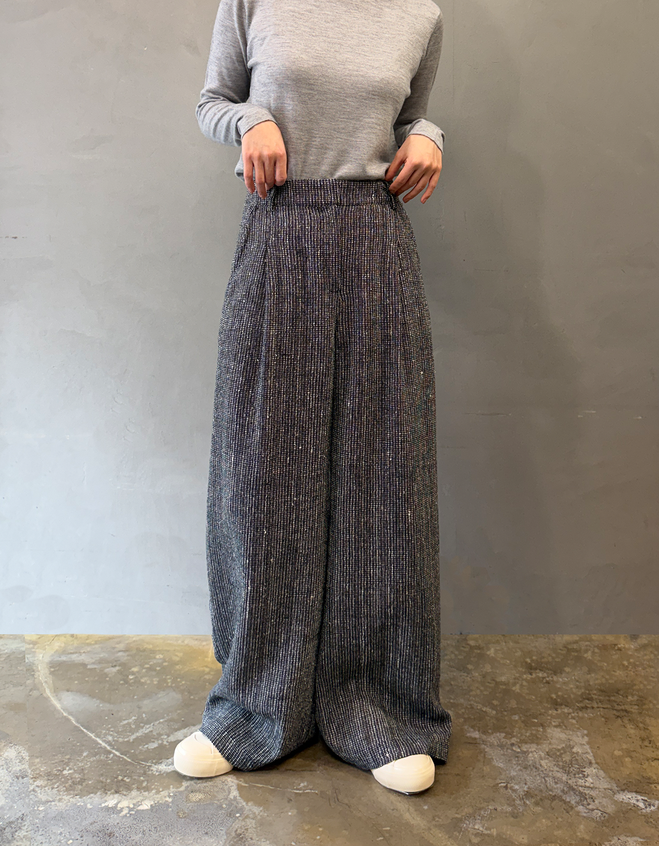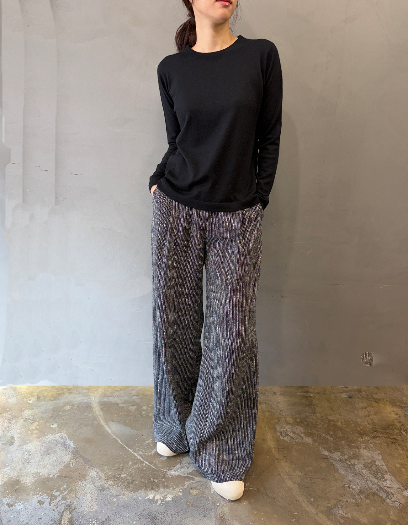 로우실크 와이드레그 팬츠-블랙&화이트 믹스