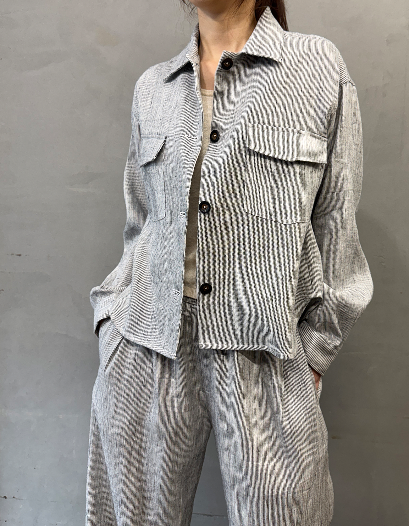 Linen& Cotton stripe shirts jacket2