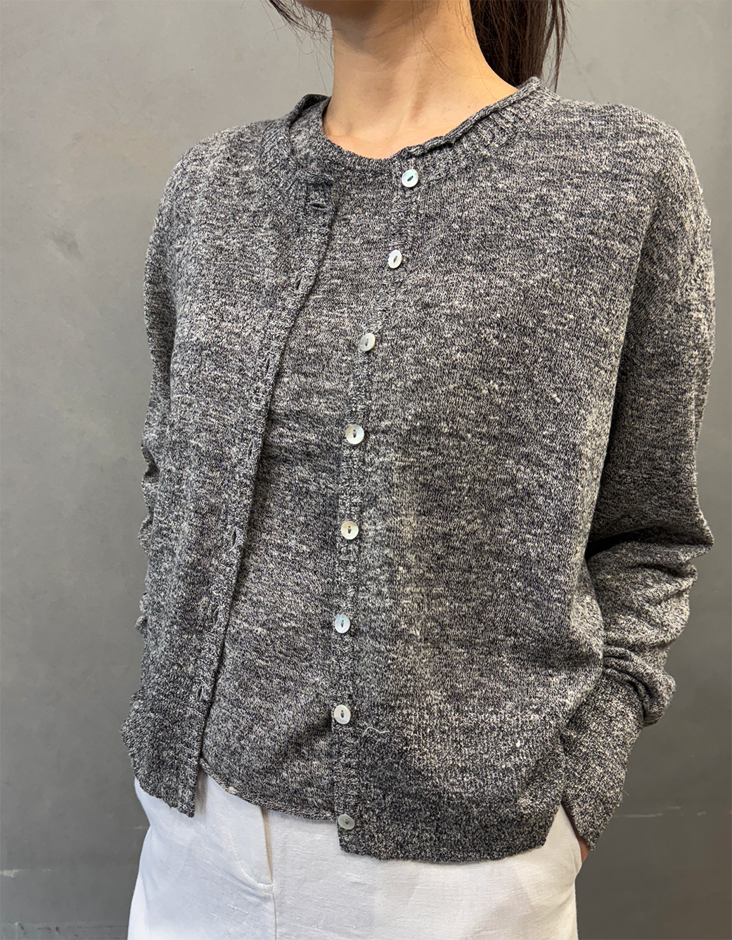 린넨&실크 로우햄 크루넥 쇼트 가디건