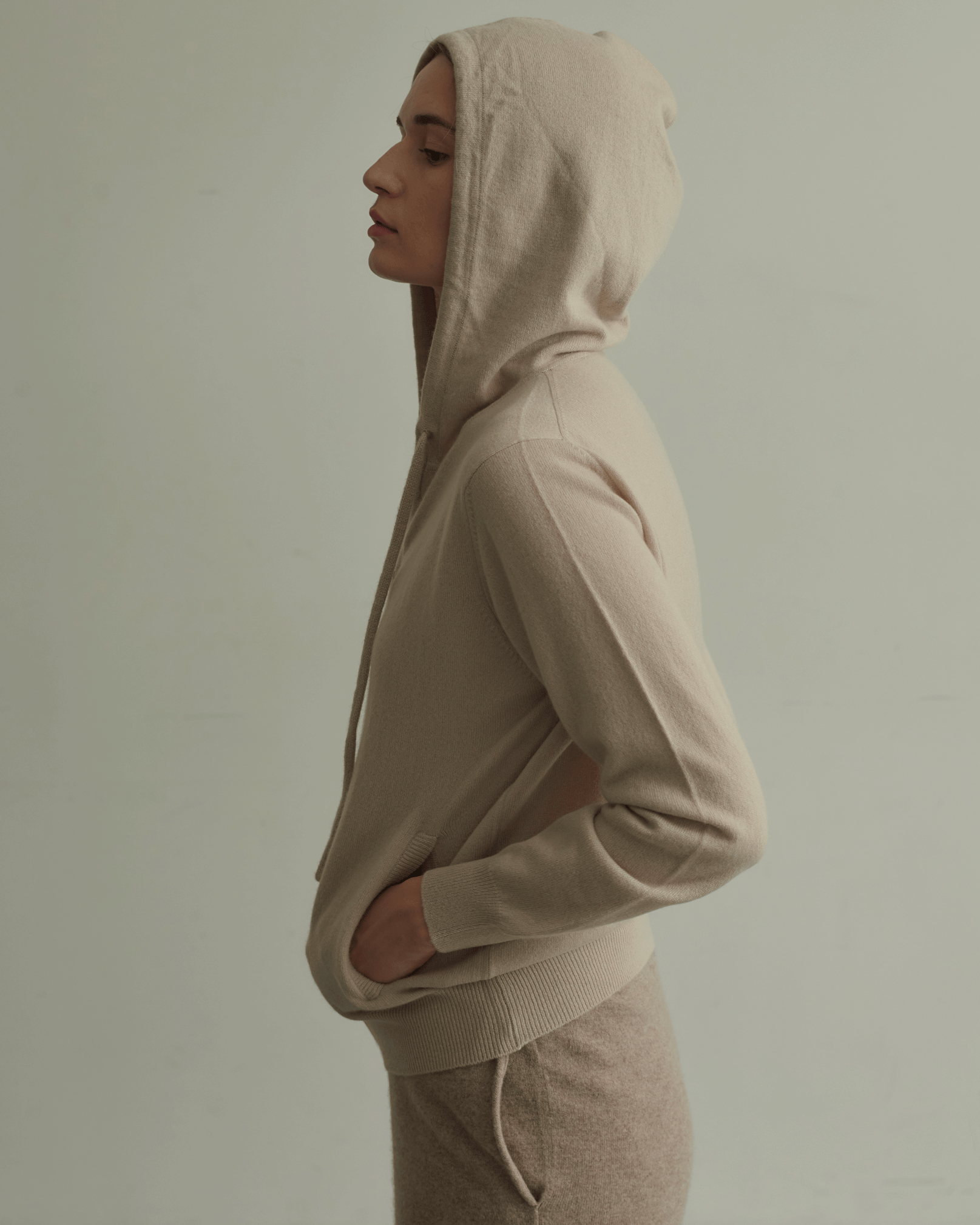 Cashmere zip-up Hoodie-oatmeal, toast-beige