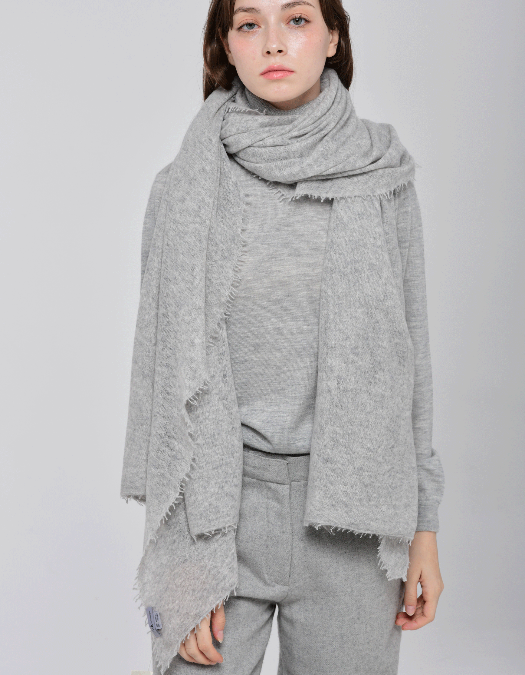 캐시미어 핸드-팰티드 니트 빅사이즈 숄-라이트그레이