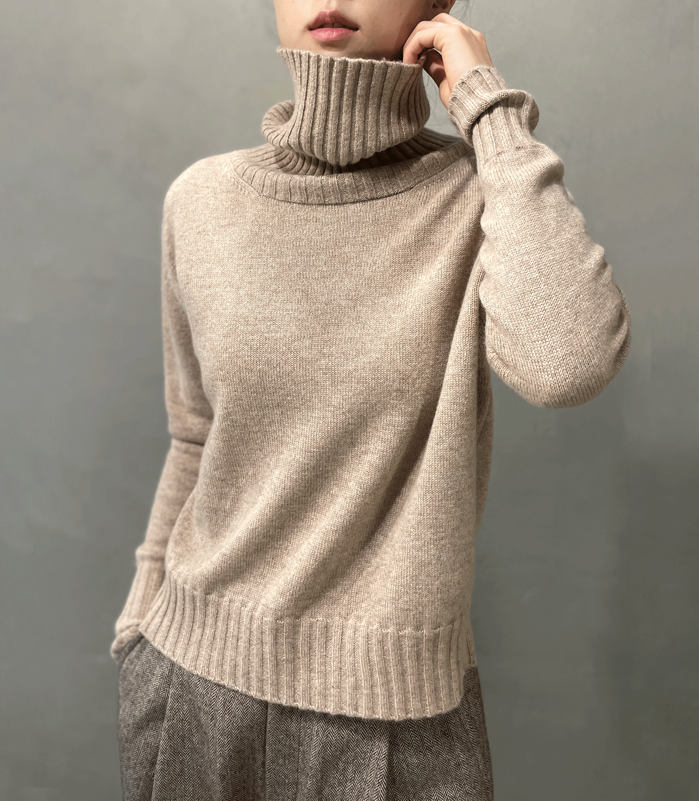 100% 캐시미어 와이드 터틀넥 스웨터.