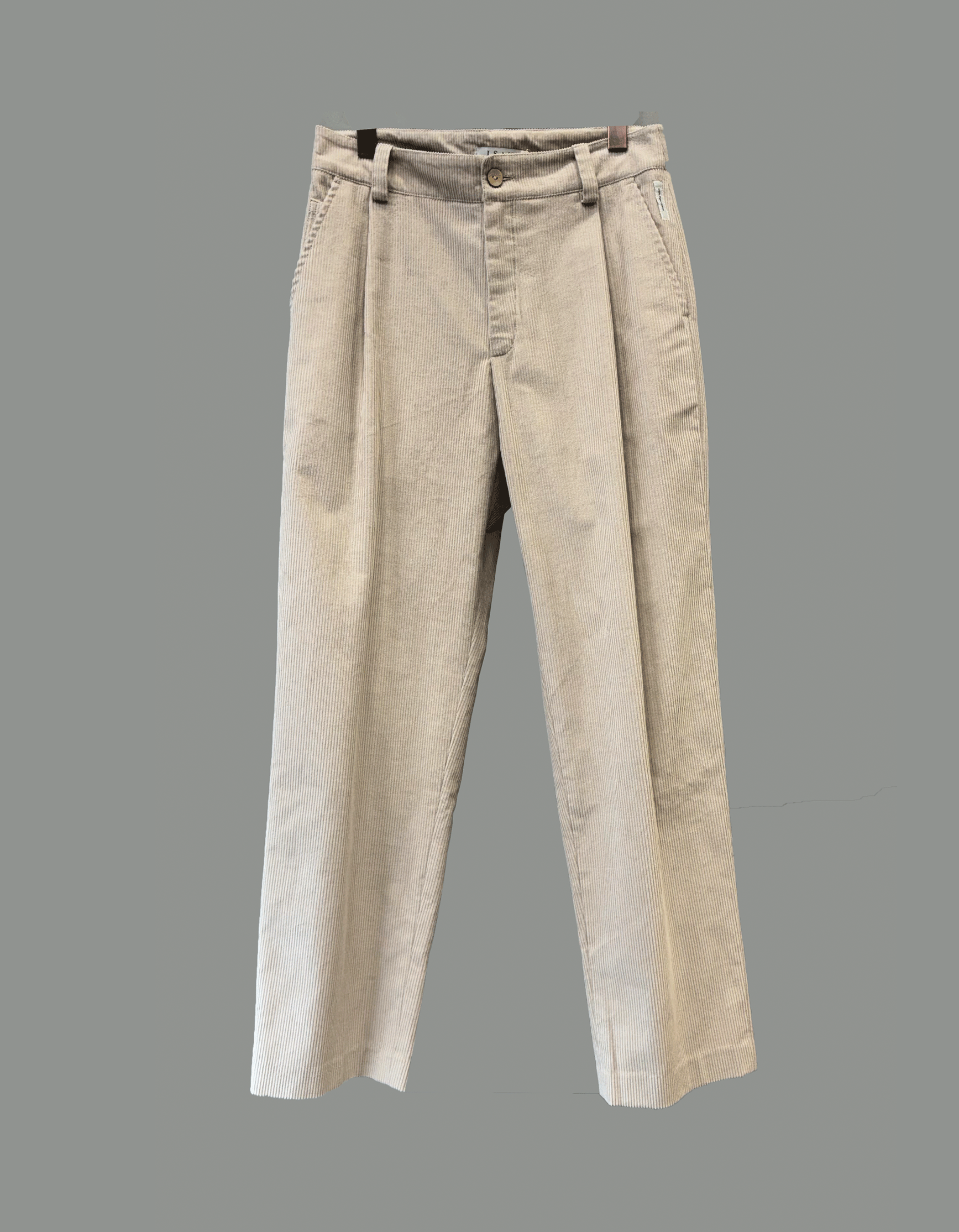 코듀로이(골덴) 플리츠 세미와이드 팬츠[남여공용]-플러스 사이즈