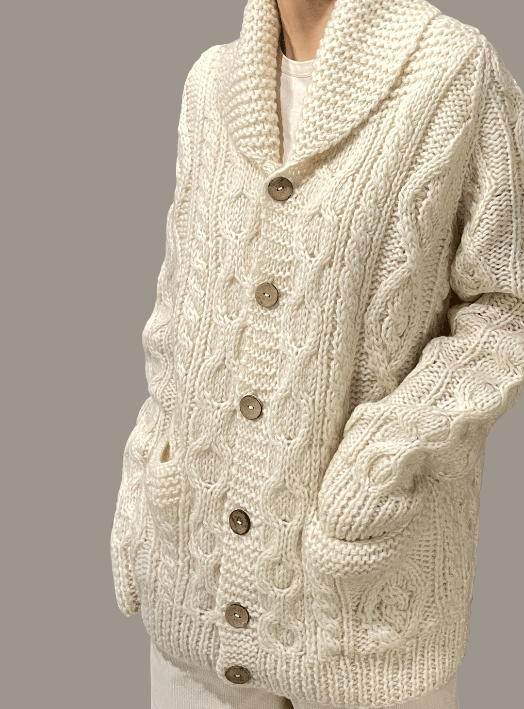 - 전통적 방식의 핸드니트 케이블 니트 가디건