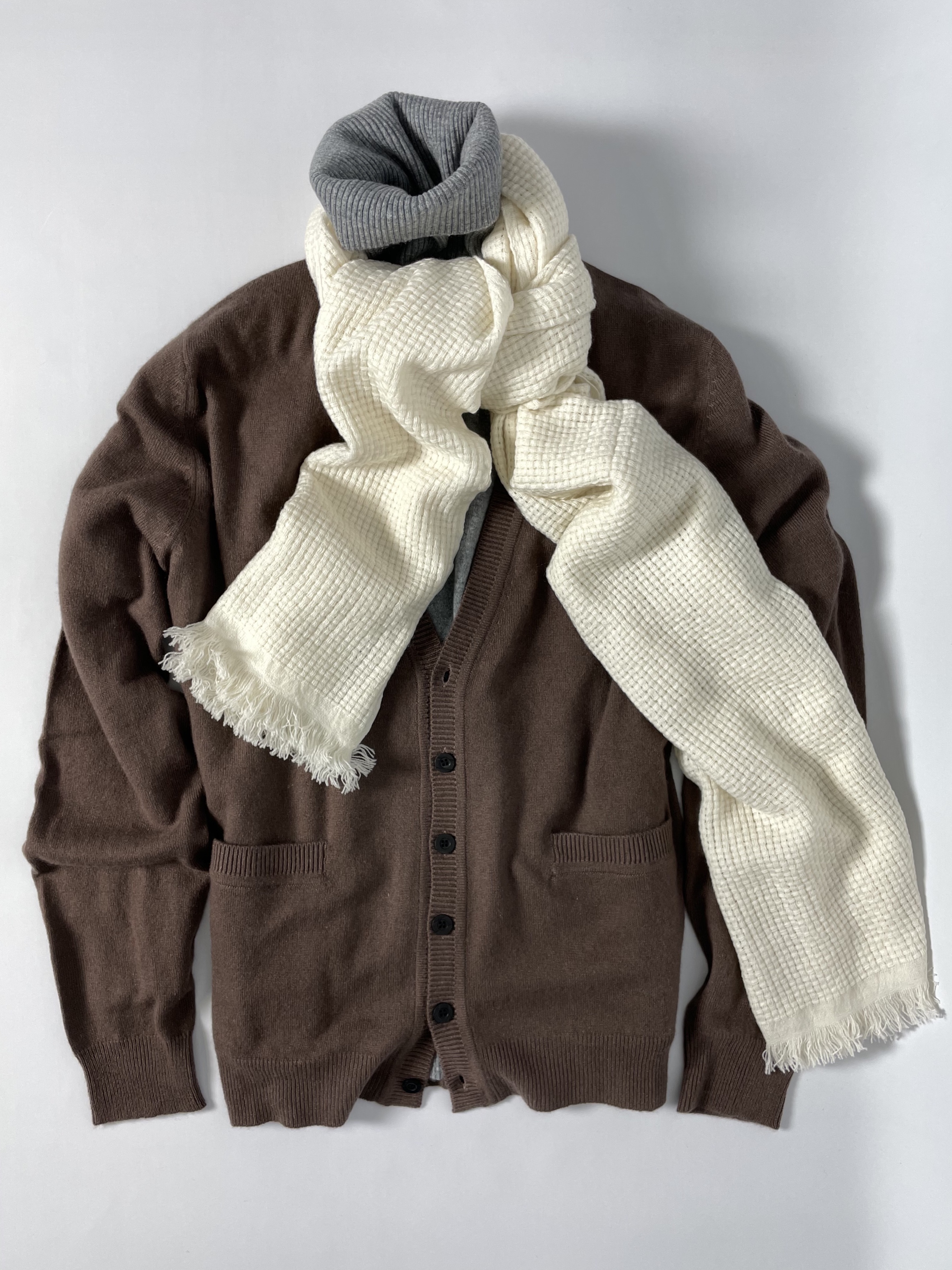 부드럽고 편안하며 너무 덥지도 춥지도 않은 인체에 적정 온도를 유지해 주는 천연 프로틴 섬유 캐시미어입니다. 캐시미어는 양모보다 최대 3배 이상 추위도 견딜 수 있다는 극강의 보온성을 함유하는 직물입니다. 날씨가 따뜻해지면 자연스럽게 벗겨지는 부드러운 속털로만 사용하고 한벌의 스웨터가 나오기까지 다수의 염소분이 사용된다고 하니 섬유로 만들어지기까지의 생산과정과 시기와 수량이 한정된 자원이어서 더욱 귀한 직물입니다.