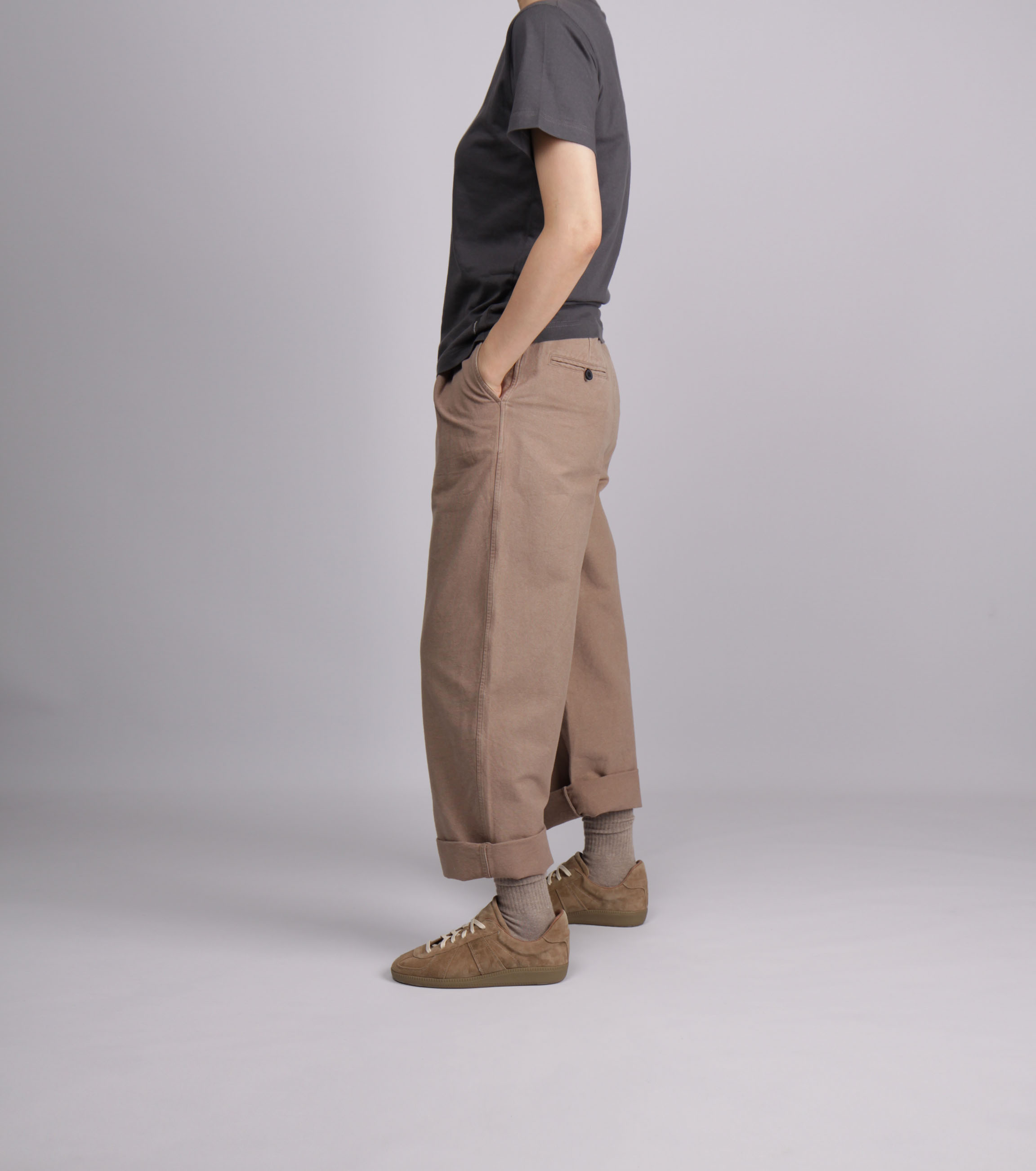 Canvas Cotton Semi-wide Pleats Pants