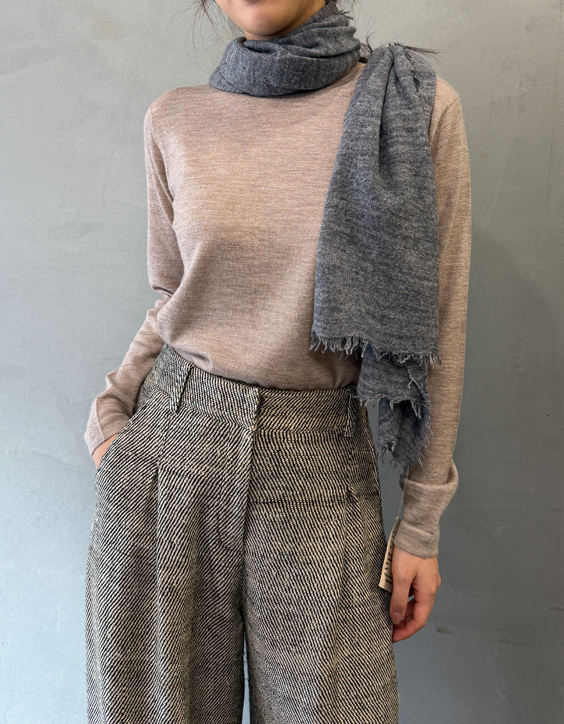 로우실크 와이드레그 팬츠-네추럴&블랙 트윌