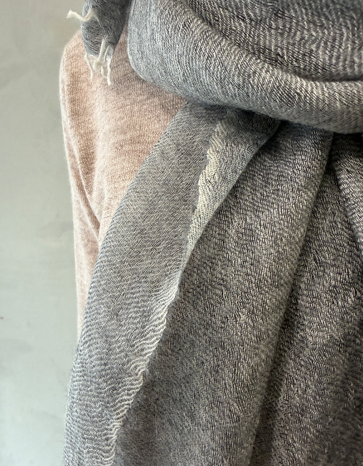 파인(초경량 가는 섬유) 캐시미어 섬유를 네팔의 전통적이 방법의 Handloom으로 직조하여 수작업 팰트화하였습니다. 가늘고 가벼운 느낌을 오래 지속시켜주는 파인 캐시미어 스카프. 캐시미어는 양모보다 최대 3배 이상 추위도 견딜 수 있다는 극강의 보온성을 함유하는 직물입니다. 날씨가 따뜻해지면 자연스럽게 벗겨지는 부드러운 속털로만 사용하고 한벌의 스웨터가 나오기까지 다수의 염소분이 사용된다고 하니 섬유로 만들어지기까지의 생산과정과 시기와 수량이 한정된 자원이어서 더욱 귀한 직물입니다.