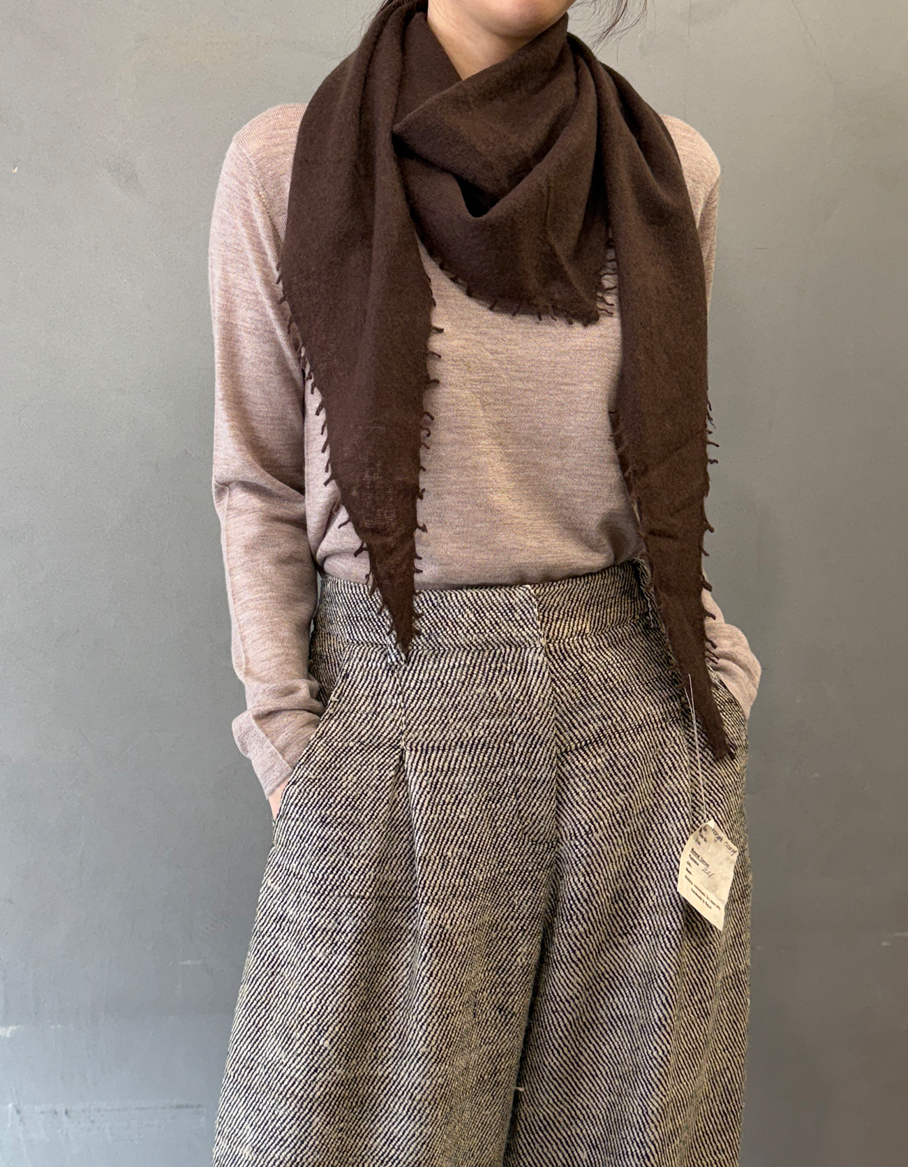 100%캐시미어 핸드 펠티드 삼각 니트스카프 .